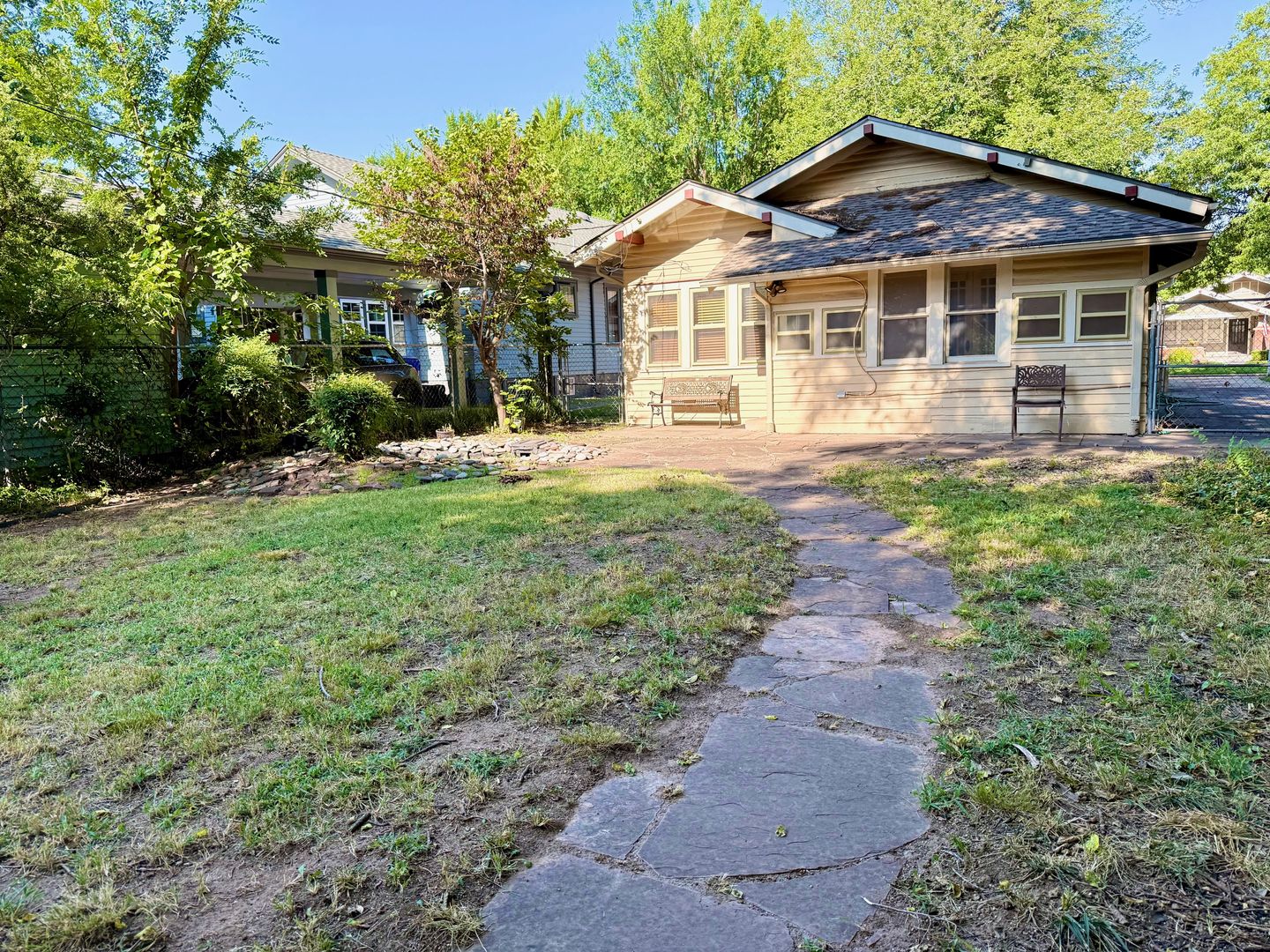 >>PRE-LEASE FOR FALL 2026<< Just a short walk to OU! Exceptional bungalow living with 2 bedrooms 1 bath and a private study. Nice front porch to enjoy the neighborhood. Heated and cooled sunroom at back of house. Nice kitchen with side by side refrigerator, range, disposal, and dishwasher along with a washer & dryer. Welcoming living and dining area. Wood flooring. Backyard has a small water feature and a large storage / work shed. Driveway parking on the North side of the house. This is a wonderful home that has been well cared for. This home will be available to move into in June 2026. No Smoking. Small to medium size non-fighting breed & house trained dogs negotiable with $400 non-refundable pet fee.